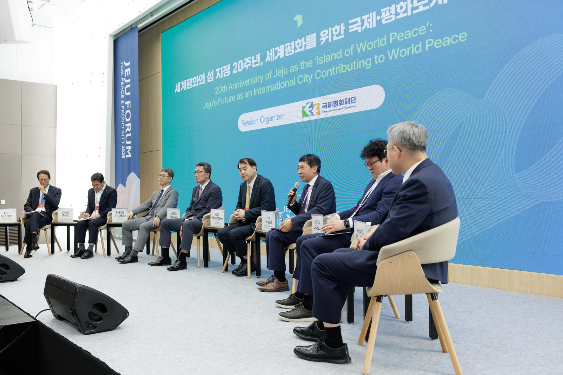 이후 진행된 종합 토론에서는 국제평화재단 설립 당시 대통령 자문 동북아시대위원회 위원장으로서 이바지한 이수훈 경남대학교 극동문제연구소 석좌교수(전 주일본 특명전권대사)가 좌장을 맡고, 정민구 제주특별자치도의회 환경도시위원장, 변종헌 제주대학교 교수, 문성유 전 기획재정부 기획조정실장, 김형수 단국대학교 교수 및 한국동북아학회장, 하태역 대한민국시도지사협의회 국제관계지원실장, 정민승 한국일보 전국부 차장, 황철규 유엔한국협회 부회장이 토론에 참여하여 정치·공공·학계·언론 ·민간·국제사회 등 다양한 관점으로 '세계평화의 섬' 제주의 평화실천사업의 법적·제도적 기반 정비, 지방외교·민제외교 강화, 제주도민 참여 확대, 조직 거버넌스의 개편, 평화문화 정착 방안 모색 등 대내외적 실천 전략에 대한 의견을 제시하였습니다. 🌿